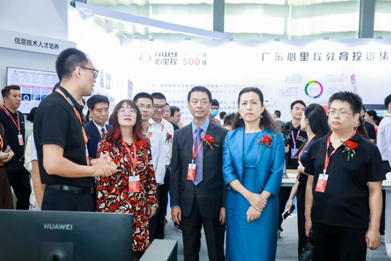 9月17日,南科大原黨委書記、未來教育研究中心研究教授郭雨蓉等一行人巡展,深圳市教育裝備行業協會會長彭錦環陪同巡展。