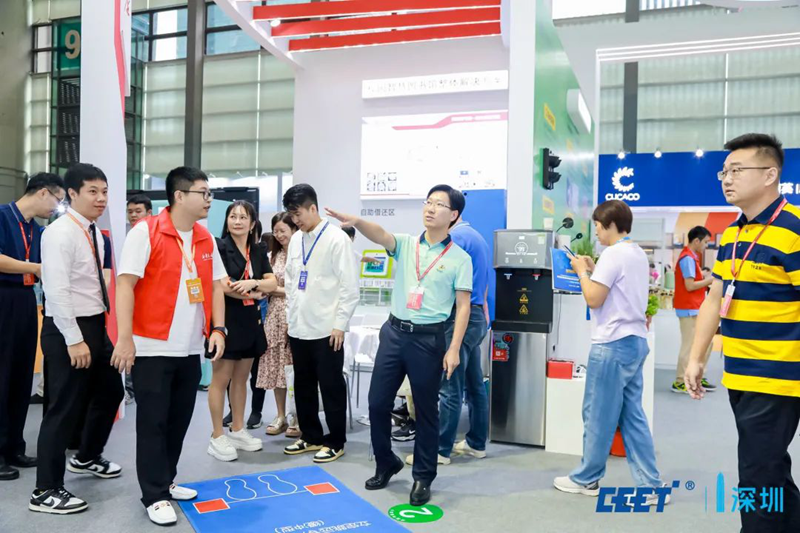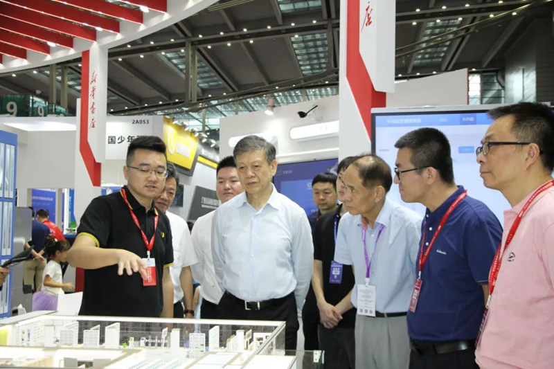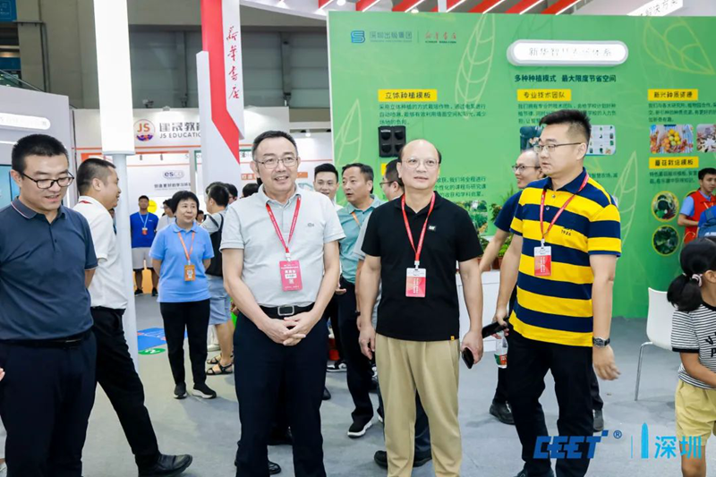 9月15日,深圳市委教育工委委員,市教育局黨組成員、副局長趙立巡展,深圳市教育裝備行業協會會長彭錦環陪同巡展。
