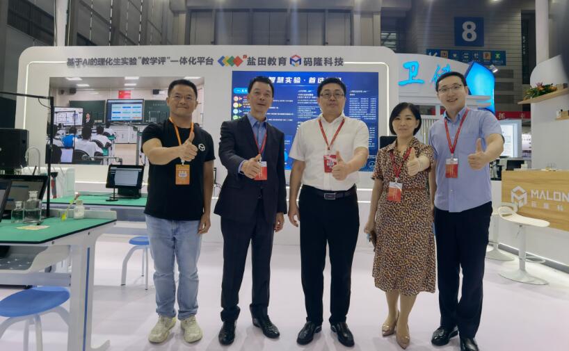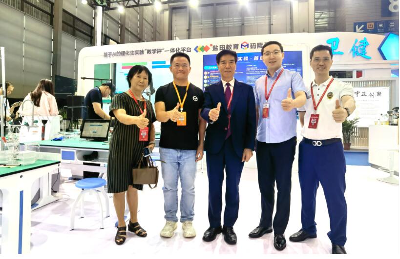 【教育部關心下一代工作委員會常務副主任、中國教育裝備行業(yè)協(xié)會專家委員會主任王富(右三)蒞臨碼隆展位參觀指導】