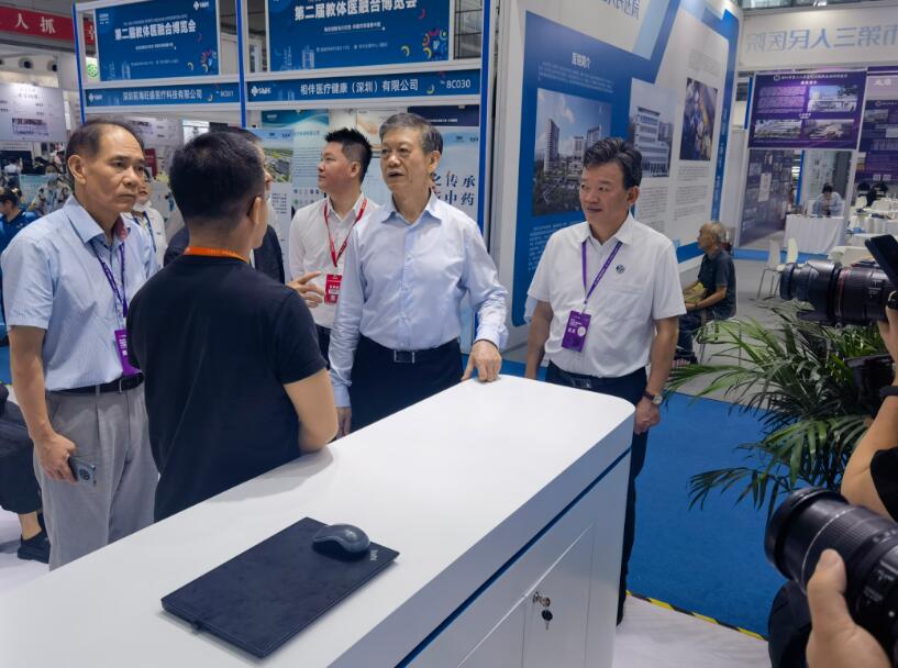 【深圳市福田區(qū)委常委、統(tǒng)戰(zhàn)部部長吳歡(右二),蒞臨碼隆展位參觀指導】