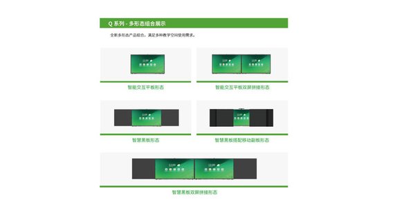 智慧黑板 Q 系列結(jié)合了白板書寫和智能交互體驗,不僅可實現(xiàn)自然板書體驗,還可搭配交互式教學(xué)軟件,兼容人性化的觸控操作,方便教師調(diào)用多媒體素材資源,打造互動式課堂教學(xué)。高度集成,產(chǎn)品組合形態(tài)多樣,自由搭配,靈活易用。