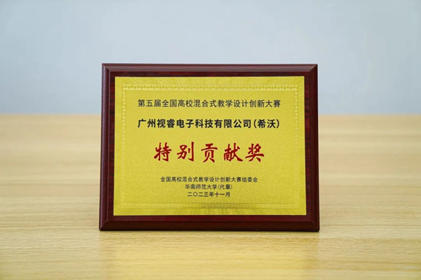 11月12日,第五屆全國高�;旌鲜浇虒W設計創新大賽閉幕式暨頒獎典禮在華南師范大學舉行。其中廣州視睿電子科技有限公司(希沃)作為官方技術支持單位為大賽提供賽事直播、設備保障等支持,獲得“特別貢獻獎”。