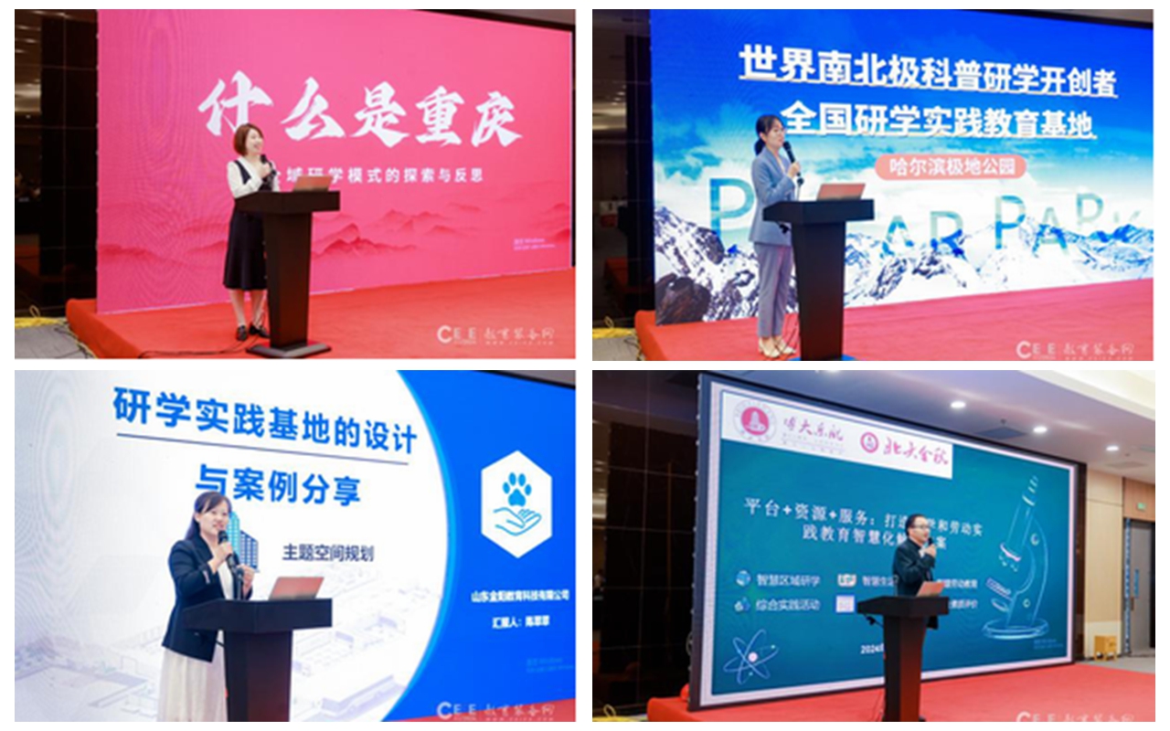 論壇的經驗交流環節,來自山東金陽教育科技有限公司、重慶新華傳媒、博大樂航金秋教育集團、哈爾濱極地公園、丹霞科普研學實踐中心、山東淄博市臨淄區太公小學分別就各自在研學實踐、勞動教育實踐方面的經驗與思考進行了分享,通過一個個生動有趣的案例,為與會來賓帶來有益的實踐參考。