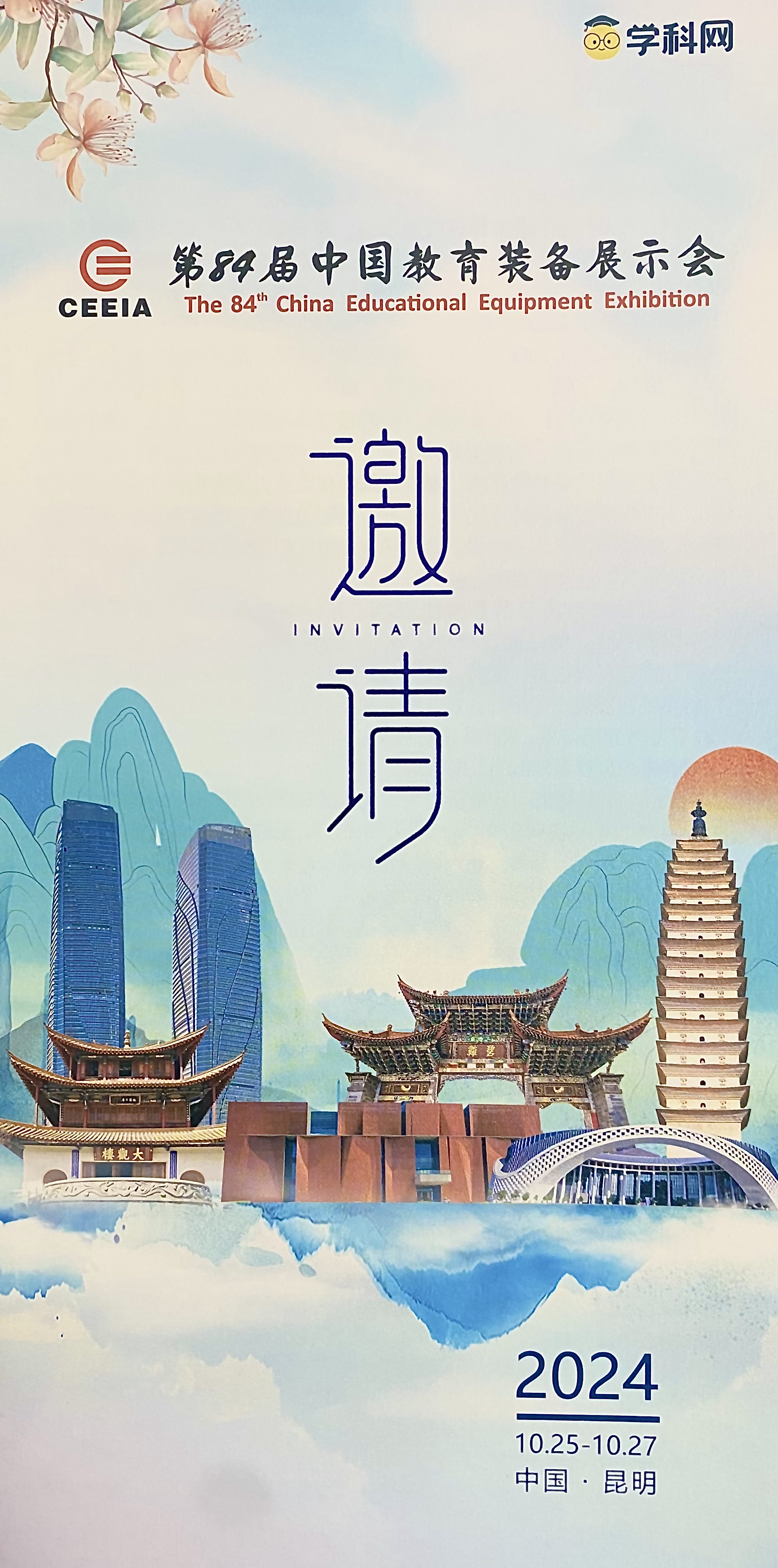 由中國教育裝備行業協會主辦,云南省教育廳、昆明市人民政府共同承辦的“第84屆中國教育裝備展示會”將于2024年10月25日至27日在昆明滇池國際會展中心隆重舉行。在此,云南省教育廳、昆明市人民政府誠摯邀請并熱忱歡迎各位同仁、各界朋友屆時蒞臨昆明,共襄教育裝備盛會,共商教育發展大計!