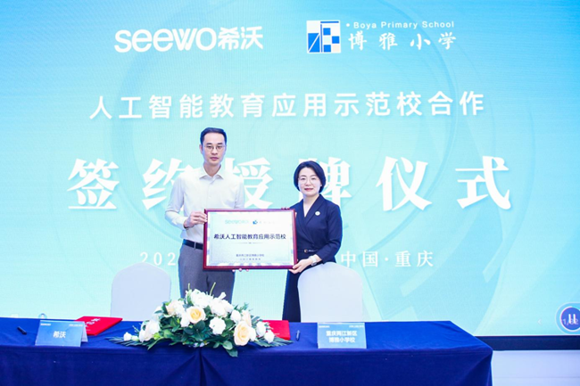 當“未來一節(jié)課”走進真實課堂,會發(fā)生什么變化?在展會現(xiàn)場,希沃與重慶兩江新區(qū)博雅小學校進行了人工智能教育應(yīng)用示范校合作簽約,助力人工智能與教育數(shù)字化深度融合,推動以智助學、以智助教、以智助管和以智助研。同期,副校長林曉宇從學校實際出發(fā),作《學以致廣,行以致雅:AI數(shù)字孿生課堂,構(gòu)建博雅教師發(fā)展新生態(tài)》分享,并表示:“希沃課堂智能反饋系統(tǒng)在學校已經(jīng)常態(tài)化應(yīng)用,能夠讓學生的數(shù)據(jù)‘會說話’,讓聽評課‘回到現(xiàn)場’,幫助學校實現(xiàn)真正的智慧教育。”