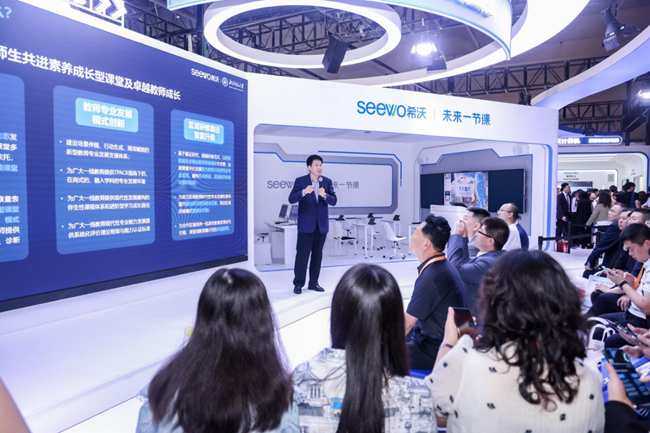 此前,教育部舉辦數(shù)字教育集成化、智能化、國際化專項行動暨“擴優(yōu)提質(zhì)年”啟動儀式,發(fā)布4項行動助推人工智能賦能教育。希沃積極響應(yīng)“人工智能+”政策趨勢,結(jié)合算法、數(shù)據(jù)、應(yīng)用場景的積累,在此次教裝展上,攜旗下多款新一代數(shù)字化解決方案亮相。展示新技術(shù)在“教、學、研、管、評”中的創(chuàng)新應(yīng)用,與行業(yè)共同探索未來教育的無限可能。