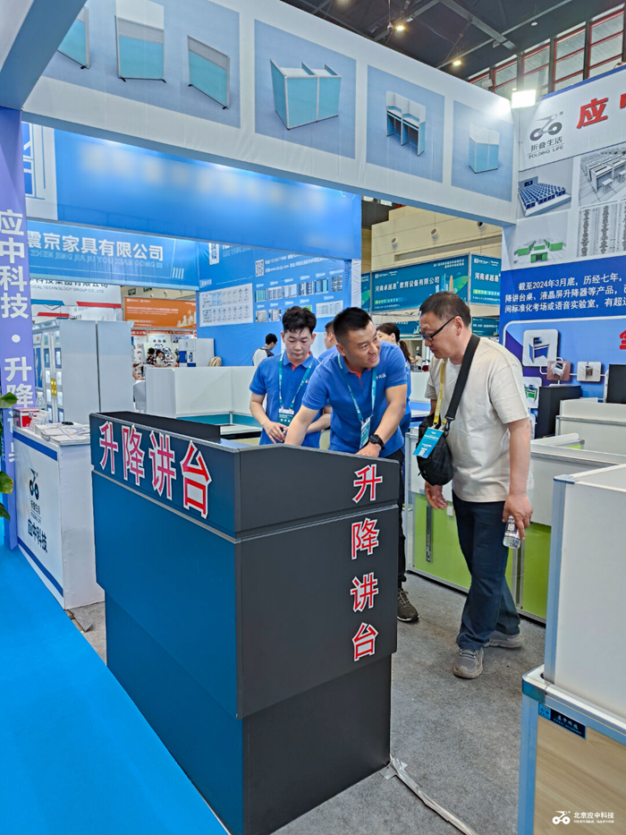 除上述兩款明星產品之外,本屆展會應中科技重磅新品多功能升降講桌也同樣備受關注。