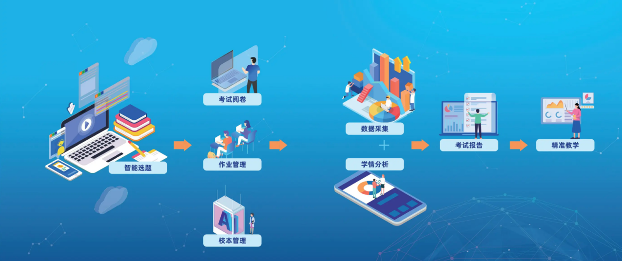 e卷通:以學科網優(yōu)質資源為依托,以智能組卷、高效閱卷為核心,覆蓋智慧作業(yè)、個性化學習報告等場景。通過線上與線下方式,記錄并沉淀教學全過程下的動態(tài)數據,形成信息化數據基座,實現精準教學的場景閉環(huán)。e卷通致力于建設智慧校園,基于海量題庫資源及大數據技術,實現智能學情診斷、科學分層、個性專練,讓老師輕松做到因材施教,讓學生走出題海高效學習,幫助管理者制定合理的教學規(guī)劃,優(yōu)化整校資源配置。