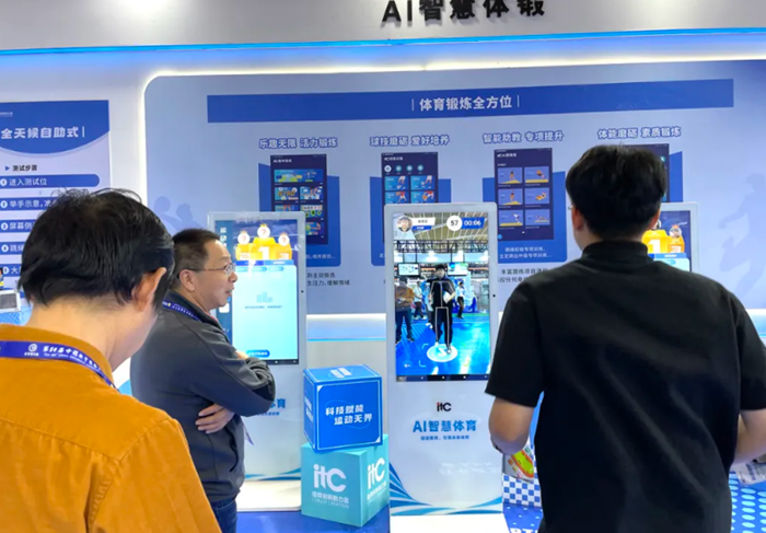 展會(huì)期間,itc特設(shè)AI智慧體育打卡專(zhuān)區(qū),現(xiàn)場(chǎng)觀眾可以近距離體驗(yàn)AI智慧測(cè)試、AI智慧體鍛、AI智慧教學(xué)等itcAI智慧體育系統(tǒng)核心功能,觀眾參觀體驗(yàn)集章打卡即可獲得精美禮品。AI智慧測(cè)試,通過(guò)AI攝像頭捕捉現(xiàn)場(chǎng)體驗(yàn)者運(yùn)動(dòng)過(guò)程,實(shí)現(xiàn)運(yùn)動(dòng)成績(jī)識(shí)別、違規(guī)動(dòng)作識(shí)別、運(yùn)動(dòng)過(guò)程分析等功能,參加者無(wú)需穿戴設(shè)備,通過(guò)人臉識(shí)別,舉手即可開(kāi)始測(cè)試。AI智慧體鍛,AI自動(dòng)視頻采集識(shí)別體育鍛煉數(shù)據(jù),集玩耍與鍛煉于一體,寓教于樂(lè)。
