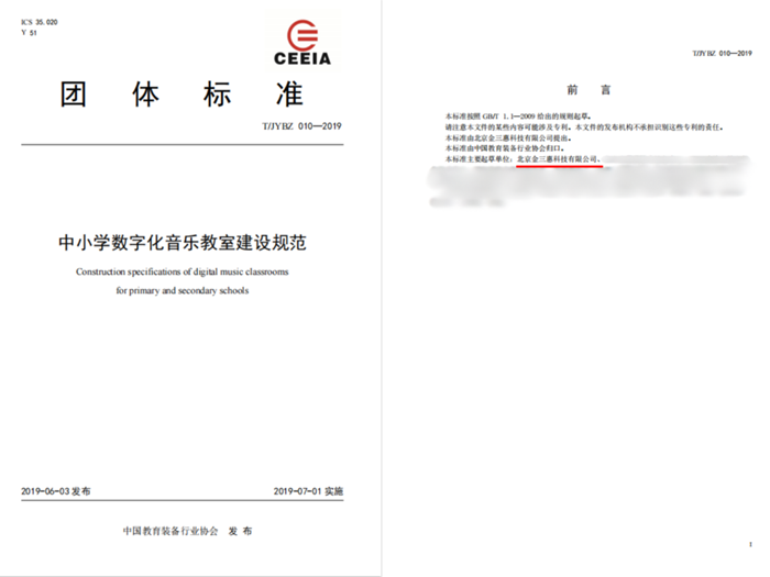 2017-2019年牽頭制定《中小學數字化音樂教室建設規范》,奠定行業技術基準。