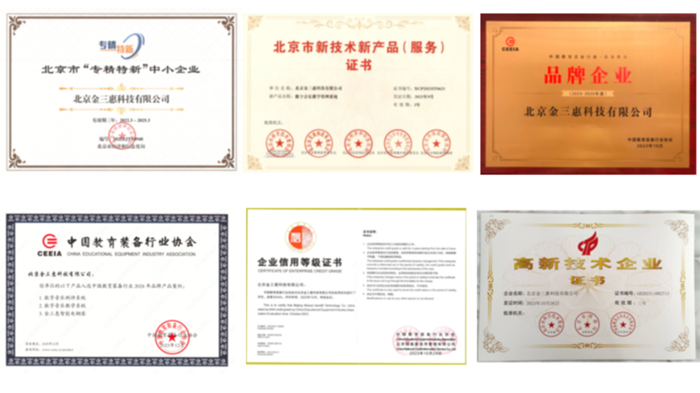 作為行業標桿企業,先后被評為國家高新技術企業、中關村高新技術企業、北京市專精特新中小企業,是中國教育裝備協會理事單位和推薦品牌企業,中國教育技術協會音體美數智專委會常務委員單位,榮獲2023年北京市新技術新產品(服務)認定證書,獲得科大訊飛戰略投資。