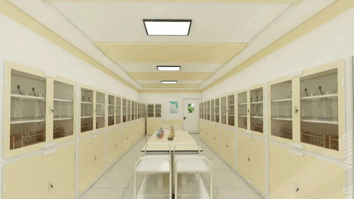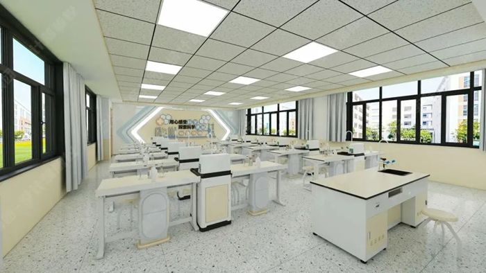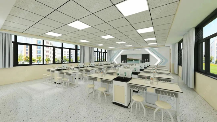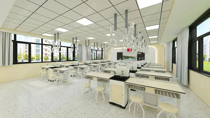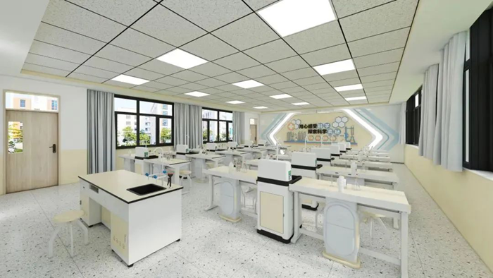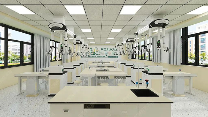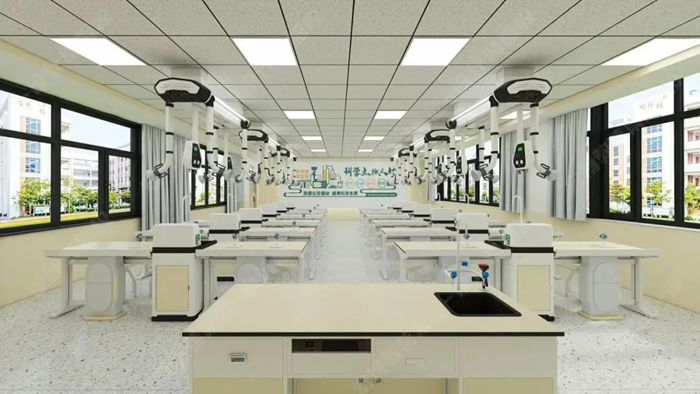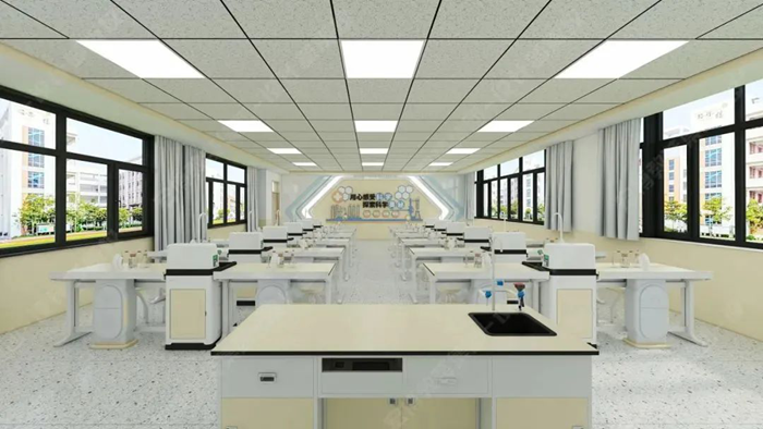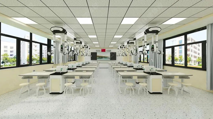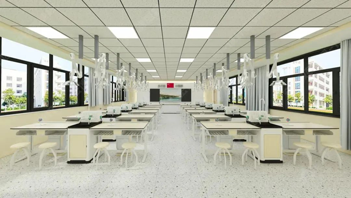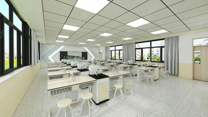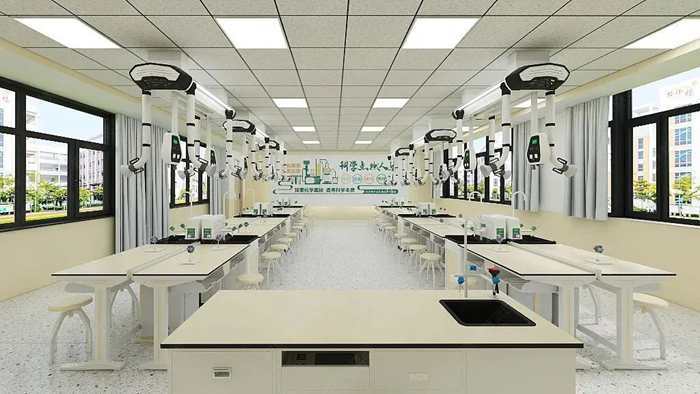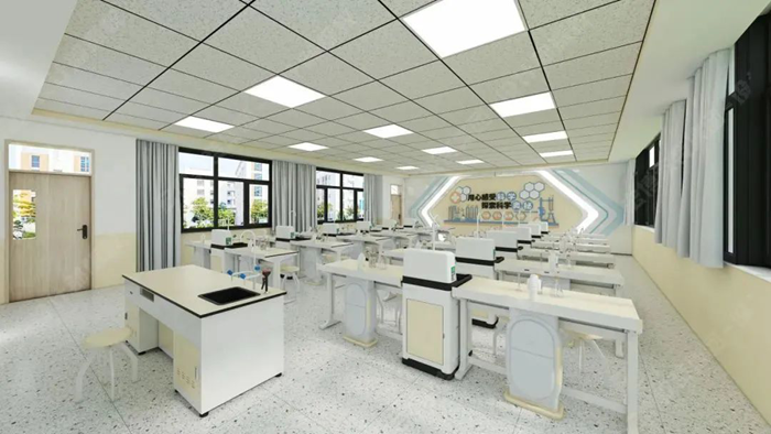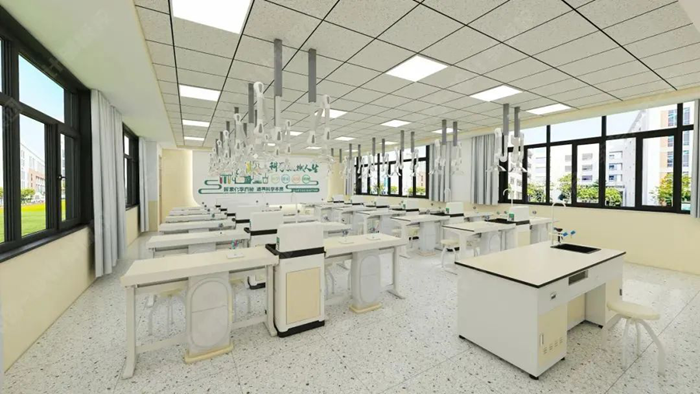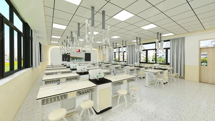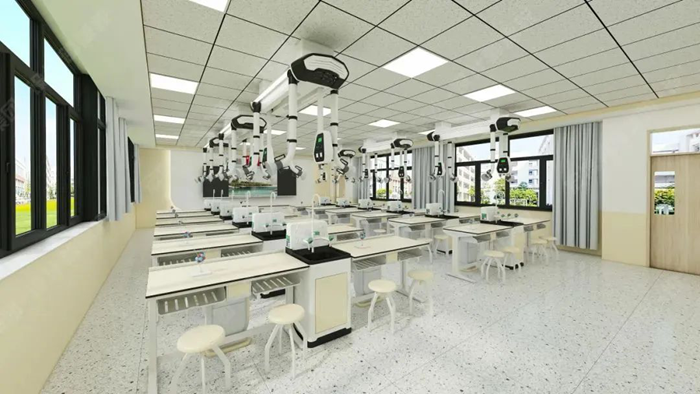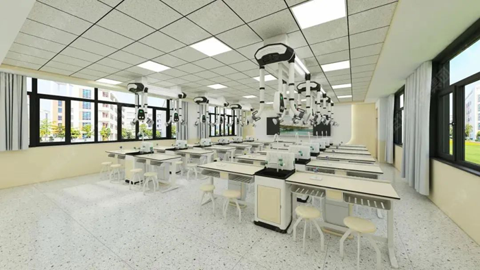 利用教室頂部空間的天然優(yōu)勢,將給排水、供電、照明、通風四大功能模塊整合至頂部,打造真正意義上的“懸浮式”智能實驗室。