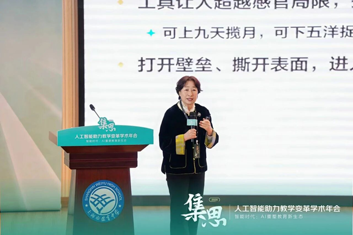 上海市位育中學校長王亦群分享了學校推動《人工智能教育從“工具應用”走向“校園生態重塑”》的系統性變革經驗。