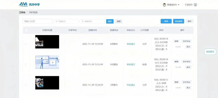整個示教過程不僅實時可見,還可同步錄制,教學(xué)結(jié)束后視頻自動上傳至平臺。當學(xué)生動手操作時,隨時調(diào)取示范視頻,逐步對照、同步模仿,實現(xiàn)“即看即練、步步對應(yīng)”,大幅度降低實操門檻,并在反復(fù)演練中深化學(xué)生對實驗邏輯與技能的理解。