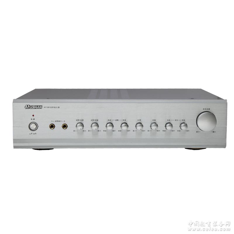 產品詳細介紹 ■ 兩組音源輸入,兩路話筒輸入。 ■ 一組前置錄音輸出及A、B組功率輸出。 ■ 本機設置反饋、混響功能。 ■ 話筒、線路的音量,音調實現獨立調節,帶話筒中控接口。 ■ 話筒插口自帶+6V幻像直流電源。 ■ 采用功率放大器過載保護裝置電路、功率放大器短路保護裝置 ■ 建議XY100功放與HY100音箱配套使用。 規格參數