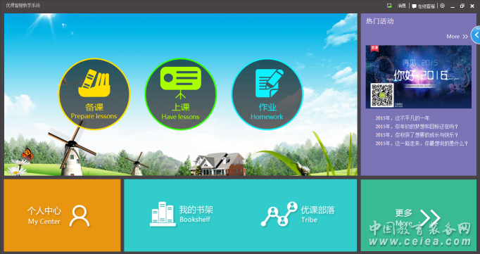 產(chǎn)品詳細介紹系統(tǒng)構(gòu)成 優(yōu)教智慧課堂解決方案,由智慧課堂教師教學(xué)平臺、智慧課堂學(xué)生端軟件、教師平板、學(xué)生平板、移動式充電柜、無線AP共同構(gòu)成。 優(yōu)教智慧課堂系統(tǒng),是運行在智慧課堂云終端上的一套軟件系統(tǒng),用以支持各種電子書包進行課堂互動教學(xué),實現(xiàn)課堂的互動與設(shè)備控制,可以與智慧校園云平臺掛接,實現(xiàn)數(shù)據(jù)中心存儲和網(wǎng)絡(luò)備課、輔導(dǎo)。 優(yōu)教智慧課堂系統(tǒng)操作簡單,實現(xiàn)全模式互動教學(xué)。學(xué)生的電子書包通過智慧課堂云終端,直接參與課堂互動,同時可以和智慧校園云平臺掛接。 本解決方案主要是結(jié)合教學(xué)軟硬件環(huán)境,研究解決適應(yīng)環(huán)境的數(shù)字化教育模式,為師生提供一系列與之相符的、套貫穿課前、課中與課后教學(xué)活動的客戶端軟件,配套相應(yīng)的數(shù)字化教材、教輔等資源,以滿足教學(xué)活動實際需要,實現(xiàn)教師端和學(xué)生端互聯(lián)、互通、互動及資源共建。 |