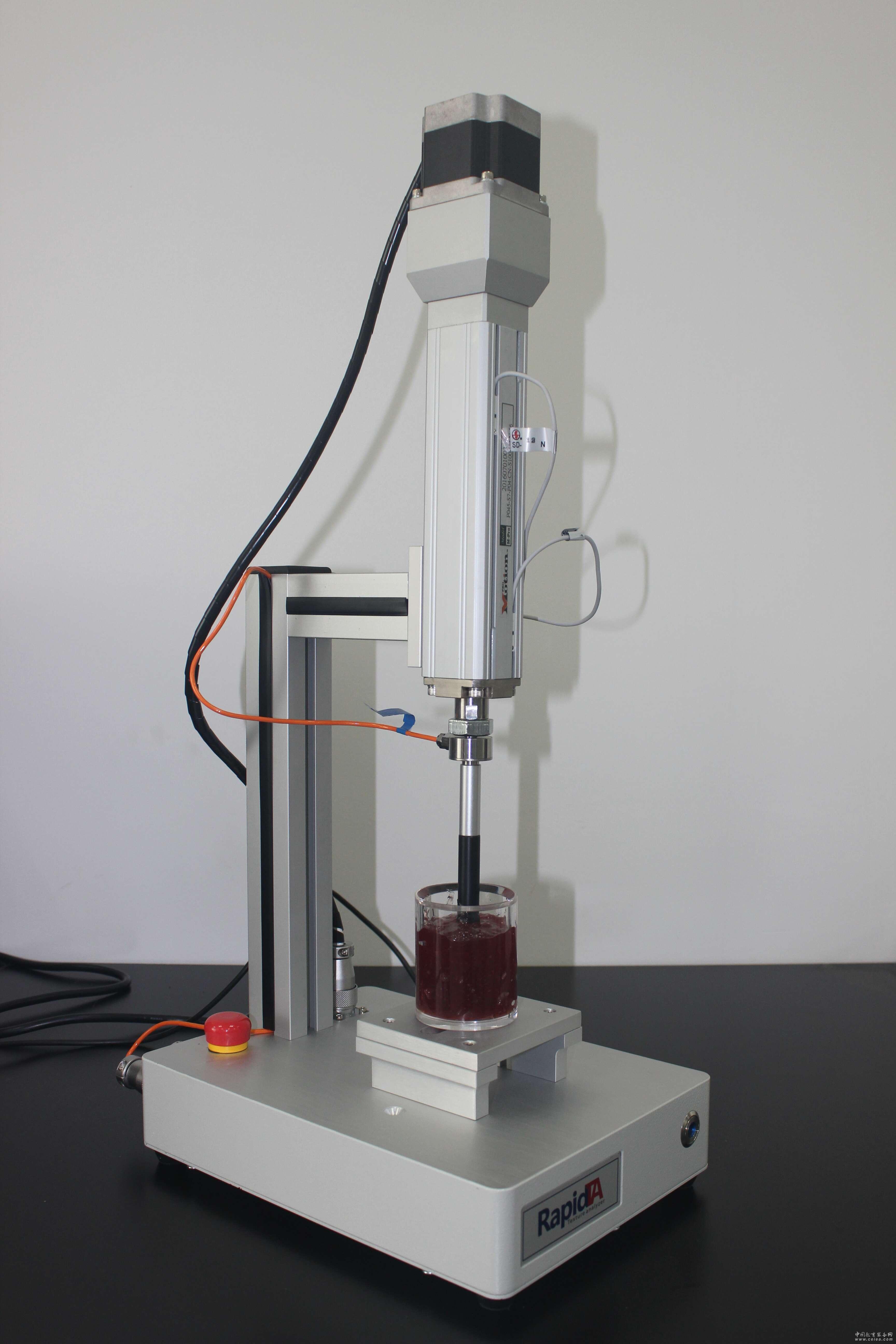 產(chǎn)品詳細(xì)介紹一 、凝膠強(qiáng)度測定儀簡介 該款儀器可用于測試果凍、蛋白、明膠、卡拉膠、瓊脂、瓊膠、樹脂、水凝膠、油田用聚合物等凝膠的凝膠強(qiáng)度。符合國際標(biāo)準(zhǔn)方法(ISO 9665 Adhesives-Animal glues-Method of sampling and testing) 測定膠體強(qiáng)度、國家標(biāo)準(zhǔn)GB 28304-2012可得然膠凝膠強(qiáng)度測定和國家標(biāo)準(zhǔn)GB6783-2013明膠凝凍強(qiáng)度測定。 這款儀器操作簡便、無需復(fù)雜培訓(xùn)、一鍵操作,圖譜和結(jié)果實(shí)時(shí)自動(dòng)顯示。 二、凝膠強(qiáng)度測定儀技術(shù)參數(shù) 1 力量感應(yīng)元:0-5g,可以使用第三方標(biāo)準(zhǔn)砝碼進(jìn)行計(jì)量驗(yàn)證和校正,有0.5kg,1kg,10kg,20kg,30kg荷重感測組件可選。 2 速度:0.50mm/s或者1.00mm/s 3 專用軟件:中英文隨時(shí)切換,測試過程中,軟件帶有實(shí)時(shí)顯示框,檢測過程數(shù)據(jù)可以實(shí)時(shí)顯示,用戶可直接觀察檢測圖譜變化 4 測試結(jié)果:被測膠體在受到力作用下瞬間破碎時(shí)所受到的最大力來計(jì)算凝膠的凝膠強(qiáng)度。測試結(jié)果自動(dòng)顯示,結(jié)果可保存為excel等office辦公文件。 5 儀器保護(hù)功能:緊急停止功能、上下極限控制功能。