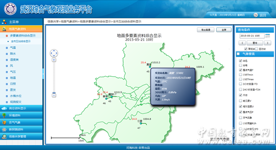 產品詳細介紹 一、平臺概述 綜合氣象觀測業務平臺是一套用于氣象觀測站將武漢市氣象局為了提高氣象事業水平,能夠快速準確的查詢各種歷史數據,為預報和服務提供更好的數據理論依據。需要建立一套集數據采集、查詢和分析于一體的查詢分析模塊,包括各種觀測數據、Micaps、雷達數據的采集、顯示和疊加分析。 二、平臺功能 (1)各種觀測數據的采集入庫; (2)查詢、分析、顯示各種氣象資料; (3)對歷史數據的統計查詢分析; (4)監控地面、高空、環境、農氣、新探測設備、micaps、雷達等氣象數據。