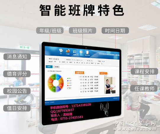 產(chǎn)品詳細(xì)介紹產(chǎn)品簡介 1. 可為學(xué)校定制外觀logo,將logo印制到指定位置。 2.均采用全新工業(yè)級液晶屏。 3.超薄壁掛設(shè)計(jì),一體化成型外殼,鋼化玻璃保護(hù) 4.采用高級電容觸摸技術(shù),多點(diǎn)觸摸,無需激活力(觸摸系列) 5.電子班牌屏幕表面保護(hù),硬度莫氏7級 6.屏保觸摸激活功能(觸摸系列) 7.零維護(hù)設(shè)計(jì),遠(yuǎn)程自定義電子班牌的開關(guān)機(jī)時(shí)間、重啟、音量調(diào)節(jié),無需人工干預(yù)。 8. 支持屏幕旋轉(zhuǎn) 9.高性能運(yùn)行配置 10.可完美支持PPT、WORD、EXCEL等OFFICE文件的導(dǎo)入播放; 11支持各種多媒體格式,包含:MKV, AVI, RM、WMV、JPEG, BMP、PNG、MP3等 電子班牌運(yùn)用 (1)上課模式 為每個(gè)教室配置一個(gè)前端顯示觸摸屏,安裝在教室門口,用來顯示班級信息,當(dāng)前課程信息,教室環(huán)境信息以及學(xué)校的通知信息,為學(xué)生和老師提供了便利。 屏幕區(qū)域說明 ①、班牌信息,電子班牌功能,避免學(xué)校每年更換班牌,直接通過軟件設(shè)置即可完成。 ②、課程信息,每個(gè)屏維護(hù)一張本班的課程表,可自動(dòng)根據(jù)時(shí)間顯示當(dāng)前的課程,授課老師以及當(dāng)節(jié)課的上課時(shí)間,也可點(diǎn)擊“課表”按鈕查看詳細(xì)課表。 ③、環(huán)境信息,實(shí)時(shí)顯示本教室的溫度,濕度,CO2濃度,光照強(qiáng)度,PM2.5等信息。 |