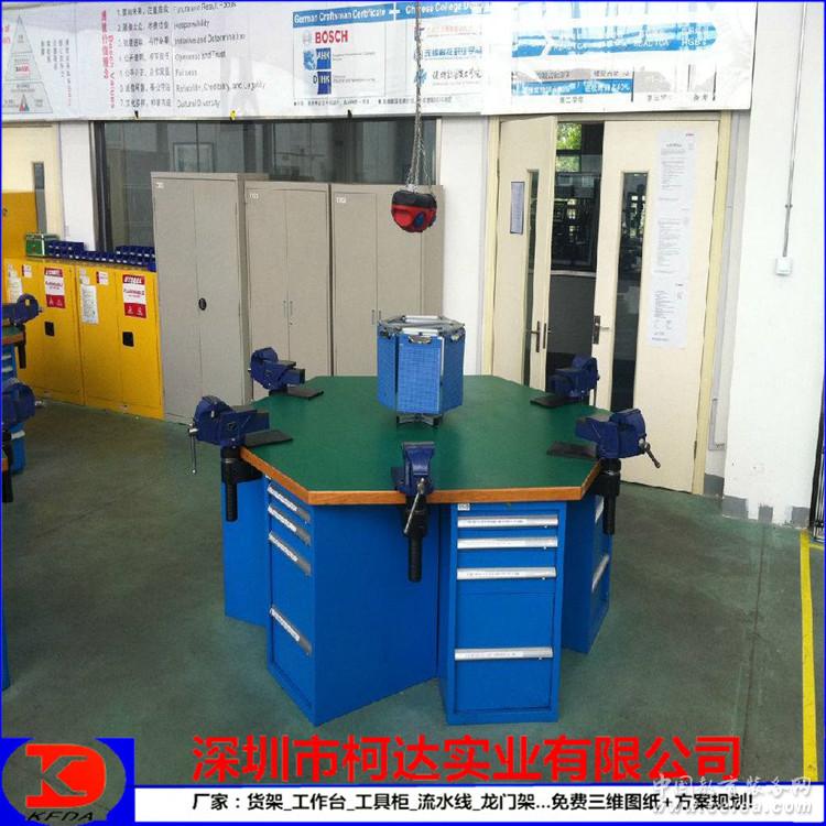 柯達kd-g05六角鉗工臺-工具柜: 六角鉗工臺桌臺面下配置6個工具柜: 1-工具柜規(guī)格:580x525x850mm;