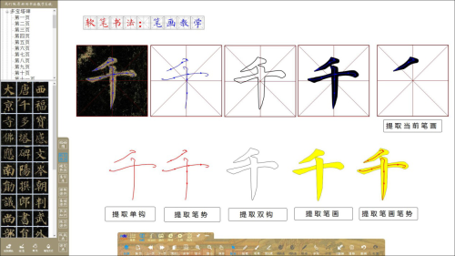 軟件提供硬筆書法教學(xué)中常用筆畫及偏旁部首矢量化圖形,方便教師進行基本筆畫及偏旁部首教學(xué)。