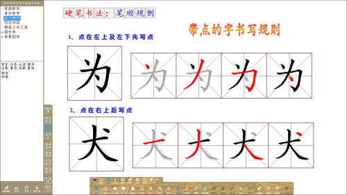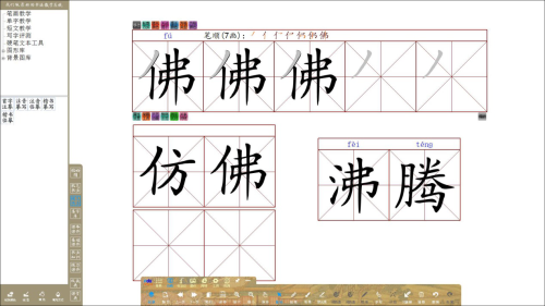 利用書法教學(xué)專用圖形庫內(nèi)各種圖形工具,更淺顯易懂地剖析筆畫搭配、排列、組合成字的各類書寫規(guī)律。