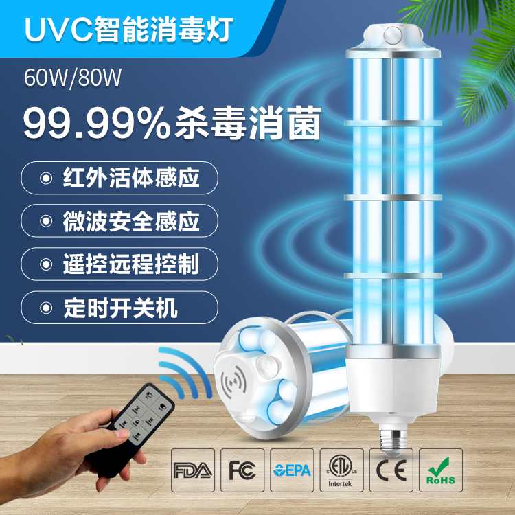 產(chǎn)品詳細介紹 應(yīng)用范圍: 醫(yī)院/學(xué)校/商場/公共場所 功率:80W 輸入電壓:220-240V 燈管類型:UVC 波長:254nm 接口: E27/E40 安裝:掛環(huán)/三角支架 控制器:無線控制 時間:30/60/90/120 分鐘 傳感器:微波感應(yīng)+ 3個紅外感應(yīng) 尺寸:D94XL422mm 認證:ETL FCC FDA CE |