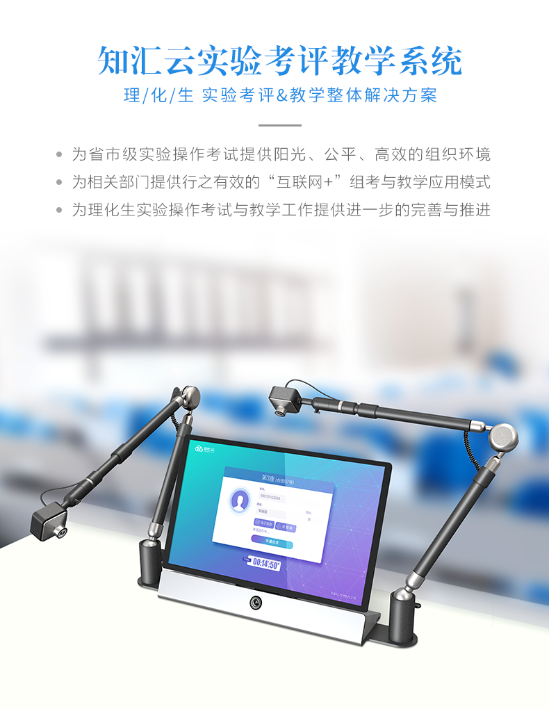 知匯云實驗考評教學系統(tǒng),為省市級實驗操作考試提供陽光、公平、高效的組織環(huán)境;為相關部門提供行之有效的“互聯網+”組考與教學應用模式;為理化生實驗操作考試與教學工作提供進一步的完善與推進。