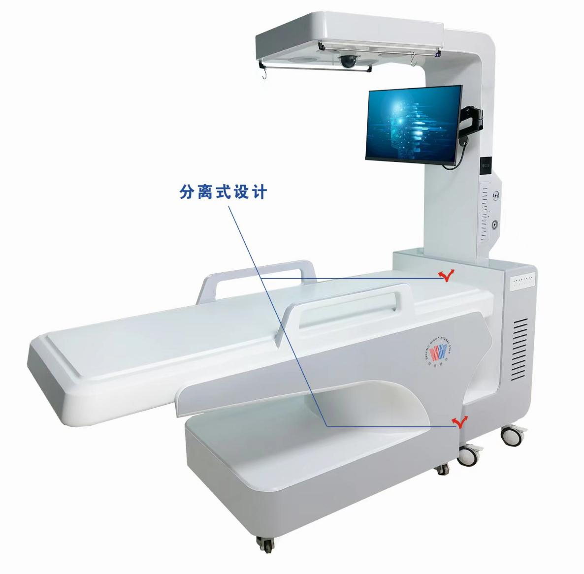 (一)產(chǎn)品參數(shù) 1 集成化無(wú)創(chuàng)型生理實(shí)驗(yàn)平臺(tái):1.設(shè)備集成平臺(tái)外形尺寸:650mm(L)*780mm(w)*2250mm(H) 誤差≤10mm,長(zhǎng)寬高; 2 實(shí)驗(yàn)操作平臺(tái)外形尺寸:1400mm(L)*740mm(w)*750mm(H) 誤差≤10mm,長(zhǎng)寬高;3 輸液架離臺(tái)面高度:≤1000mm,輸液架移動(dòng)范圍:兩側(cè)≤660mm; 4 實(shí)驗(yàn)臺(tái)面材質(zhì):ABS工程塑料; 5 分體式操作平臺(tái)及移動(dòng)滾輪:分體式操作平臺(tái),人體檢查床可單獨(dú)分離擺放,帶6個(gè)自鎖式支架移動(dòng)滾輪,材質(zhì)是金屬支架,不易變形,平臺(tái)可分別獨(dú)立移動(dòng); 6 集成信號(hào)擴(kuò)展面板:隱藏式擴(kuò)展面板,可收納隱藏,面板新增220V電源接口,DC12V輸出接口,USB接口,HDMI高清接口,音頻接口各1個(gè); 7 高清攝像頭(選配):進(jìn)行人臉識(shí)別,身份權(quán)限信息識(shí)別,體溫檢測(cè),支持 3W 人臉庫(kù)。1:1 比對(duì)識(shí)別率 99.7%以上,溫度檢測(cè)結(jié)果支持無(wú)縫對(duì)接大數(shù)據(jù)云平臺(tái),云平臺(tái)界面支持個(gè)性化定制,比如制作成需方的名稱(chēng)和圖片; 8 站立平臺(tái)(選配),進(jìn)行體重測(cè)量,測(cè)量精度:±0.5kg; 9 可移動(dòng)設(shè)計(jì):萬(wàn)向、可水平調(diào)節(jié)、可移動(dòng)腳輪,方便挪動(dòng); 10 智能化標(biāo)配電腦計(jì)算機(jī):用于接收信號(hào)采集系統(tǒng)傳輸?shù)男盘?hào),并進(jìn)行數(shù)據(jù)處理、分析、生成實(shí)驗(yàn)報(bào)告,支持連接打印機(jī)輸出書(shū)面報(bào)告等,I5處理器,WIN10操作系統(tǒng),8G內(nèi)存,1T硬盤(pán),集成顯卡,23英寸液晶顯示器,無(wú)線(xiàn)鍵鼠套裝; 11 一體式檢查床扶手:一體式檢查床扶手,扶手尺寸705(L)*130mm(H); 12 燈光系統(tǒng):頂部不少于四組可調(diào)燈光;
