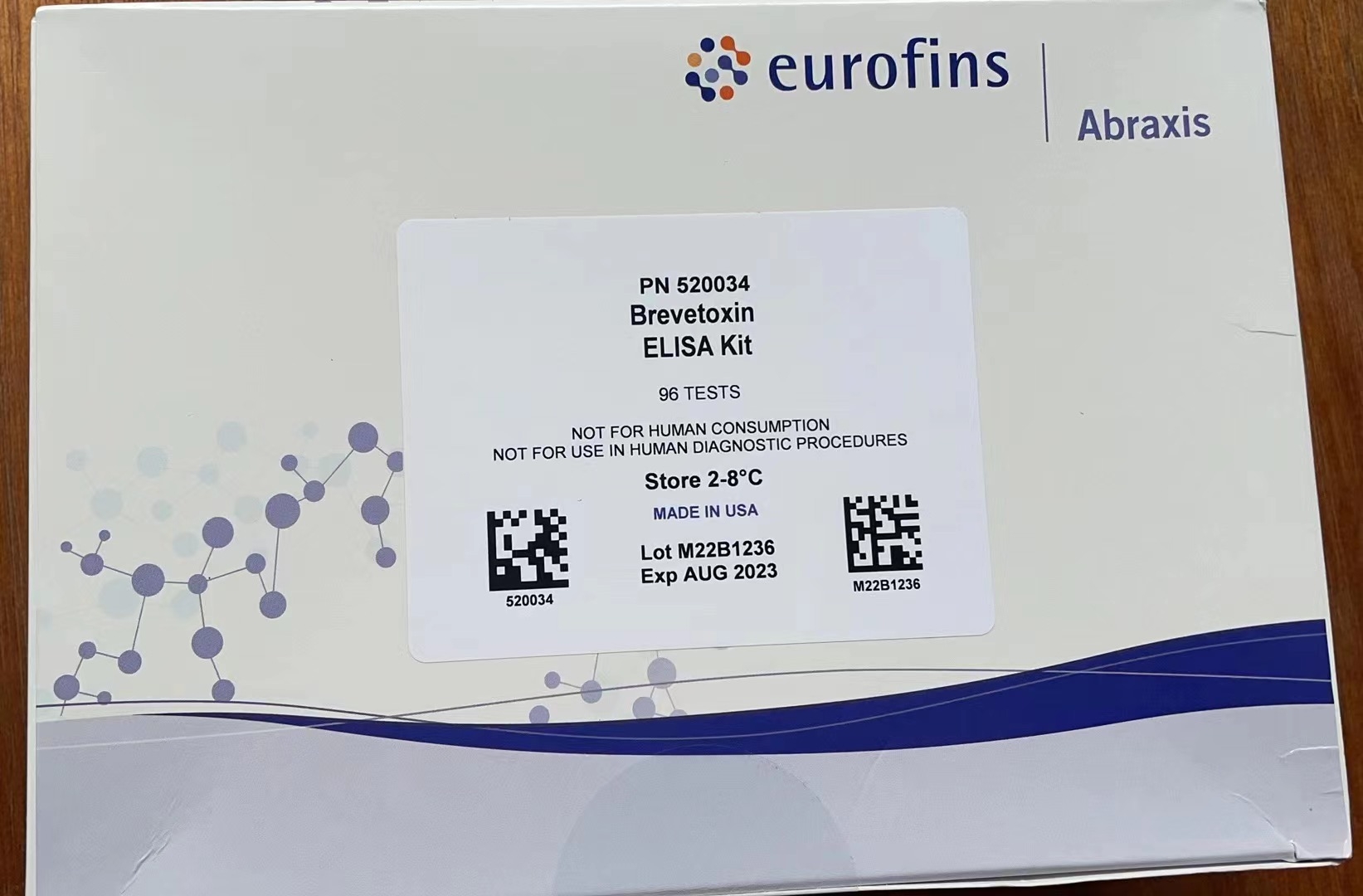 產品詳細介紹神經性貝毒(NSP)ELISA檢測試劑盒 Brevetoxin(NSP) ELISA Test Kit PN520034 (中文說明書僅供參考請以英文為準) 1.說明 本檢測采用酶聯免疫法定量檢測神經性貝毒的存在。神經性貝毒是一種毒素,與貝殼類動物的神經中毒有關。本檢測可用于水產樣本對貝類毒素的定性和定量檢測,例如甲殼類動物的樣本。對于甲殼類動物的需要提前制備樣本。如果條件允許,陽性樣本可以做HPLC,GC/MS或其他方法確認。 2.安全性說明 標準品溶液含有少量的神經性貝毒。底物溶液含有四甲基聯苯胺,終止液還有稀硫酸。避免皮膚與粘膜與終止液接觸。若終止液與皮膚接觸,可用水洗去。 3.貯藏與穩定性 試劑盒貯存在4-8°C。使用前試劑盒中溶液要恢復到室溫20—25度。在保質期內試劑盒都可以正常使用。 4.檢測原理 本實驗采用直接競爭ELISA方法,用特異性抗體識別神經性貝毒。樣本中的神經性貝毒可與貝毒-酶-結合物競爭,同包被在微孔板上的羊抗-神經性貝毒抗體結合。洗板加入底物溶液,顯藍色。藍色的深度與神經性貝毒在樣本中的濃度成反比。顏色反應在規定時間內終止,顏色用酶標儀讀值。每孔的樣本濃度值可以通過標準曲線來讀取。 5.試劑盒局限性和可能的干擾 樣本中經常存在的大量的無機物和有機物經檢測,并未為發現影響試劑盒的檢測結果。然而,由于樣本中發現有易變質的混合物,由它們引起的基質反應不可避免地會影響檢測結果。操作失誤也可能造成實驗錯誤。如:貯存的問題。加樣次序錯誤,加入溶液的體積錯誤,孵育的時間過長或者過短,影響免疫反應或者底物反應,實驗過程中溫度過低或者過高(低于10℃,大于30℃)。本試劑盒提供篩查神經性貝毒的篩查結果。陽性樣本可采取其他的分析方法(GC,HPLC,其他方法)證明。 |