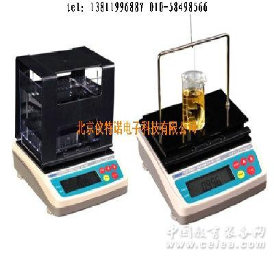 四、固體密度計/液體密度計的功能特點 固體功能特點: 無需人工計算,測試更有效率,適合生產現場和實驗室連續多次測試 塑料顆粒、薄膜、浮體、發泡體、硫化后橡膠、密封圈、碳酸鈣粉末…等類似產品皆能快速測量 具有DIN體積磨耗量、阿克隆磨耗量、質量與體積變化率(膨脹)直讀測定功能 全自動零點跟蹤、蜂鳴器報警、超載報警功能 具有實際水溫補償功能,可適應測試環境變化 使用水作介質,也可使用其它液體介質 液體功能特點: 操作一步到位,便于實現多次連續快速測試 任何溶液皆可快速測量 可測量常溫至100℃溫度狀態下的樣品密度值 取樣方法 所測樣品只需50CC 沒有韋氏天平法、比重瓶法煩瑣的調試與操作 可配合恒溫水槽作業、測量所需溫度的液體比重 測量杯容易清洗,不受比重瓶口徑小的限制,可重復使用。同時也可使用一次性測量杯 揮發性液體、腐蝕性液體、粘稠性液體、強酸強堿性液體皆可快速測量(選購相關配件) 五、固體密度計/液體密度計的測試步驟 固體測量步驟: ①將產品放入測量臺,測空氣中重量,按ENTER鍵記憶。 ②將產品放入水中測水中重量,按ENTER鍵記憶,顯示密度值。 液體測量步驟: ①將盛有樣品的燒杯放于測量放置板上,扣除掛鉤的重量。 ②用掛鉤將標準砝碼放入待測液體中并掛置于測量架上,即顯示為密度值。