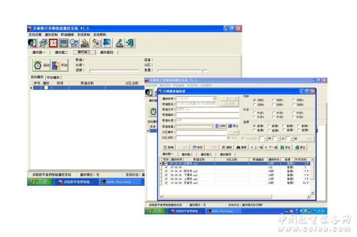 本系統可實現對播出的曲目內容、時間、日期自由設定,并具有自動分區廣播和兼容多路外接媒體功能,達到任意選擇播放,硬盤式存儲曲目,采用開放式音源軟件平臺,用戶可以任意添加/存錄曲目。智能軟件控制平臺能同時運行四套節目程序,每套節目均能獨立編程操作。系統主控機設有六路外控功放、六路外控音源,每路外控功放與外控音源均能編程獨立操作。智能軟件平臺+系統主控機。多媒體微機控制的數字化網絡廣播;能根據廣播需要開啟計算機,在播放完畢后能自動關機實現真正無人職守。