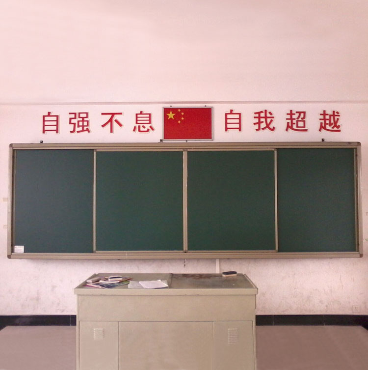 左右推拉樹脂綠板優點: 1. 板面墨綠色,反光度低,保護眼睛的同時,大大降低了眼睛的疲勞,有益于健康。 2. 擦拭省力,吸粉性強,可減少塵粒的飛散。 3. 板面與筆跡的對比度高,字體清晰,可視性強。 4. 易寫易擦,手感極佳。 5. 堅實的香檳金鋁合金邊框,個性化筆托,設計簡單大方。 6. 隱形安裝,美觀大方亦安全可靠。 7. 可左右移動,增大板面的使用面積。
