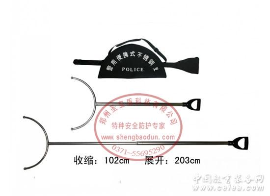 13673667919(王經理) 0371-55695290 QQ:1162808866 鄭州圣寶盾科技有限公司銷售的防暴鋼叉分為簡裝和精裝兩種,鋼管厚度不一樣,包裝不一樣,價格不一樣。另外,大量批發采購價格優惠!!具體的面議! 防暴鋼叉是民警在接處警中有效應對酒醉鬧事人員、肇事肇禍的武瘋子和持dao肇的治安當事人等警情的一種新型非致命性約束警械。 防暴鋼叉長兩米,重量不到2公斤,可伸縮,最短1米左右,最長可伸至2米多遠,jing用鋼叉末端裝半月弧形插頭,沒有銳利棱角,既可保證保安人員的安全,也能有效制服歹徒,且可避免對歹徒的人身傷害。