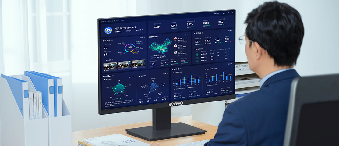 針對教育數字化實踐和校園管理需求,希沃打造一體化的數字校園基座,聯通全校教學、教研、德育、電教等多部門業務數據,以開放融合的平臺能力,賦能各類教育數字化應用生態化發展,助力學校實現人員、設備、事務多維度統籌管理,真正實現數據驅動智慧決策。