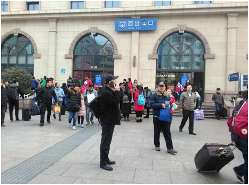 志愿者在青島站到達(dá)出口舉牌接站,接到來賓后,步行前往停車場,抵達(dá)交通車乘車點(diǎn)(東西出站口均有志愿者引導(dǎo)至循環(huán)交通車)。