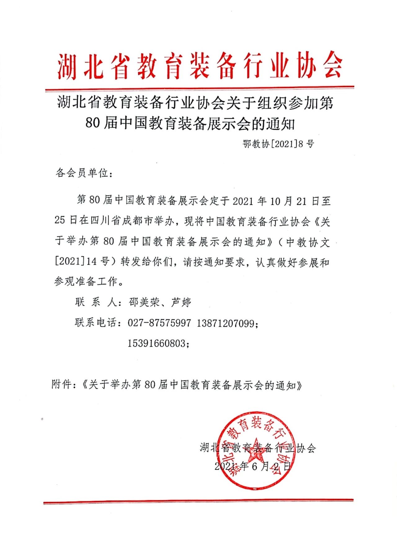 第80屆中國教育裝備展示會定于2021年10月21日至25日在四川省成都市舉辦,現將中國教育裝備行業協會《關于舉辦第80屆中國教育裝備展示會的通知》(中教協文[2021]14號)轉發給你們,請按通知要求,認真做好參展和參觀準備工作。